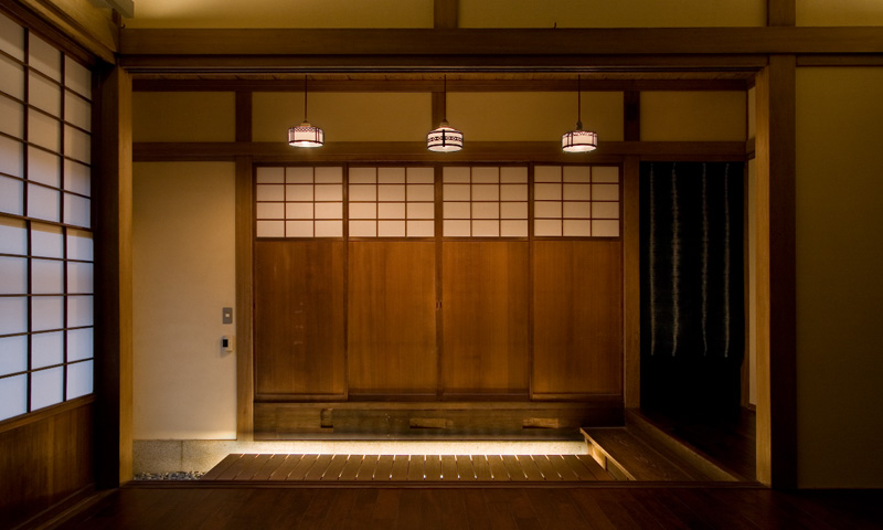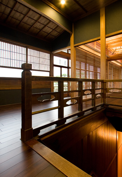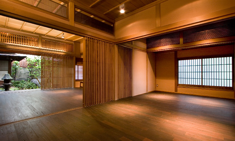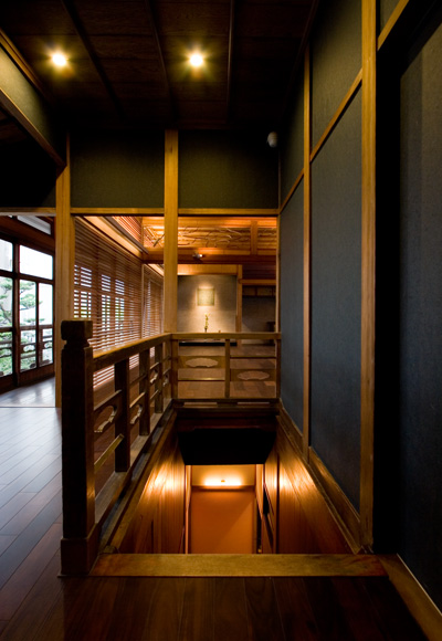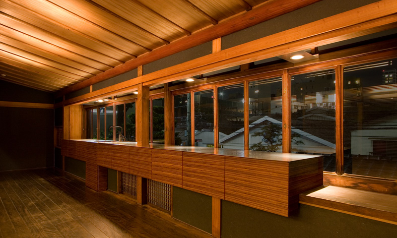 昭和11年に建設された木造2階建の住宅を、事務所+多目的スペース+店舗へと改修するリノベーション・プロジェクト。70年来、この土地で歴史を刻み続けている建物を、鑑賞対象としてではなく生きた形で活用しつつ、同時に周囲の建物などと一体となって構築している風景を次世代に引き継いでいくことが期待された。第1期の外装周りの補修と復原および構造補強工事、第2期の段階的な内装工事を経て、都心の場所性をいかした現代の用途のもとに空間がコンバージョンされ、あらたな歴史が刻まれ始めている。ただし、建物内部の木部の材料と仕上げに関してはすべてオリジナルの状態が保存されており、必要に応じていつでも建設当初の様子に戻すことができるように計画されている。左写真は改修後の佇まい。建物までも含めた街の景観を失わないように、外観に関しては徹底した復原を行った。