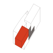 東側のスクリーンを箱状に奥行きを持たせます。箱の中は、リビングや和室、寝室といった居室とします。