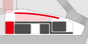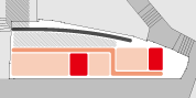 ボックスに沿って、スクリーン側に一直線に動線を通します。居室群同士およびその他の空間を、効率の良い最短の動線で結びます。